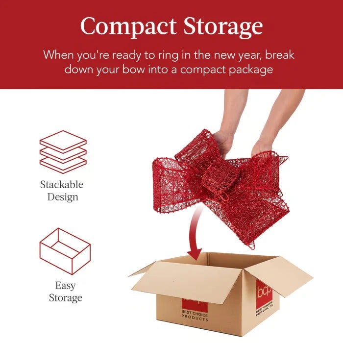 Each bow is crafted with vibrant, heavy-duty material that holds its perfect shape, even in the snow. It features powerful, bold LED lights that shine brighter than anything on your street, ensuring your home is too beautiful to ignore.